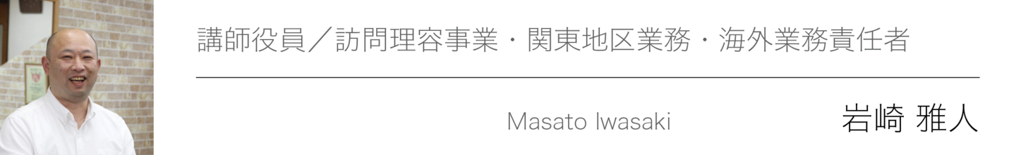 日本衛生管理協会訪問出張理美容事業および関東地区業務の責任者を務めます。埼玉県理容師「理容イワサキ」代表。店舗と共に訪問理容を医療機関などで展開。訪問出張理美容の実技理論などを担当。
