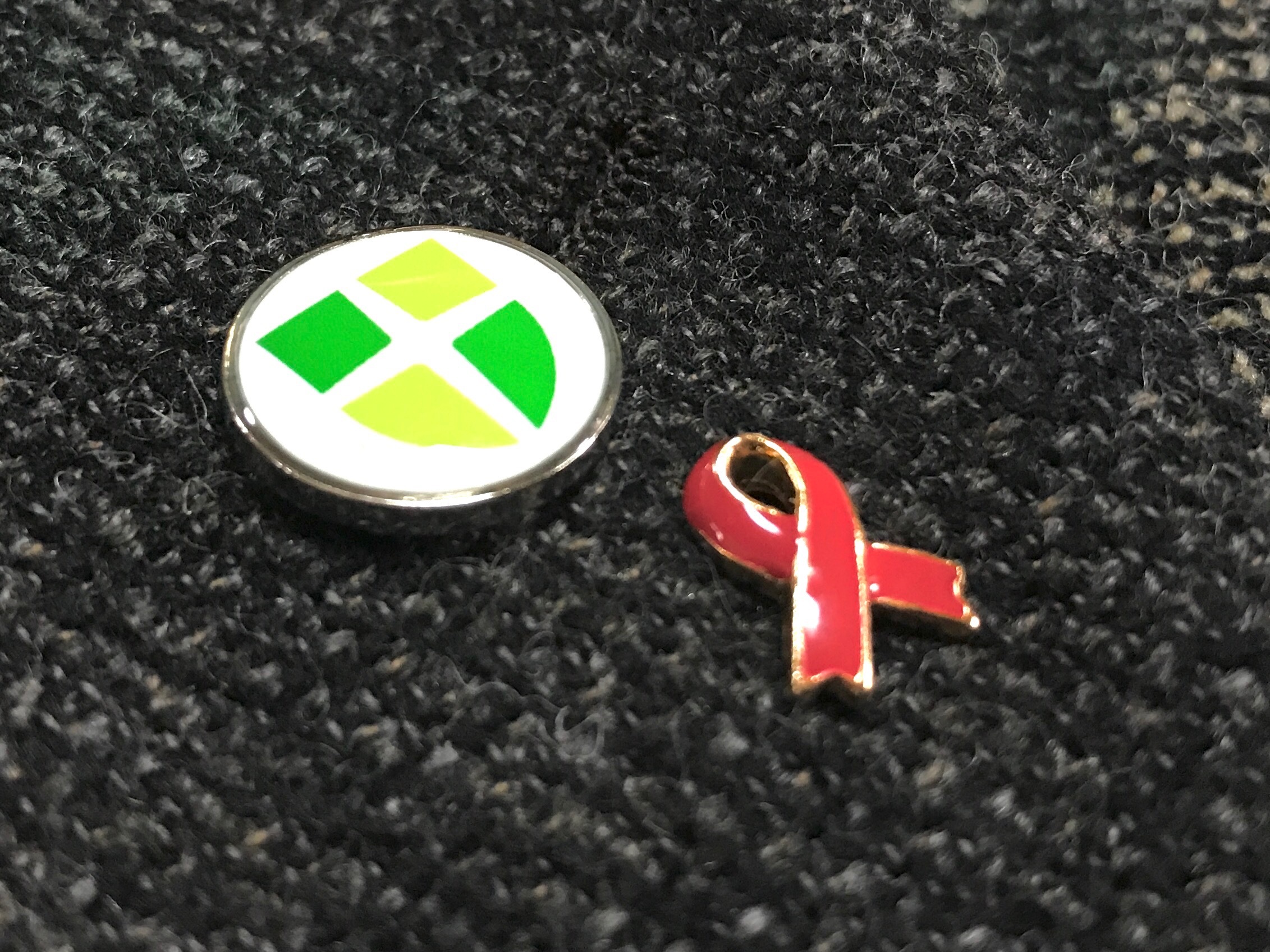 修了者の方への、HIV感染症・エイズの予防とまん延の防止、エイズの流行に影響を受けている人々の人権の尊重と偏見・差別の解消という、社会全体が目指すべき目標を実現するために制作された「レッドリボン」のピンバッチを各修了者の皆様への授与はピンバッチ(小)が廃版となったため、第二期までとさせていただきます。なお、講習費よりの募金は三期以降も継続いたします。