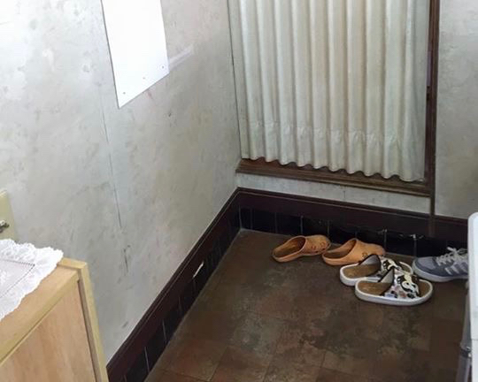被災した理容店内において、店内に流れ込んだ土石や泥水などの排除処理が始まった初動作業状態です。下水道の破損などから、土石に混ざり糞尿などの汚水が地上に溢れ出ている状態です。それらが人的に排除している段階における復旧方法です。この時は、その環境下であるものを有効に使用します。