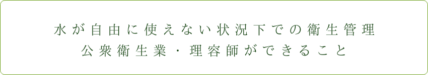 震災など長期間の災害時では断水など「水が自由に使用できない」状態になります。そのような時は、同じような状況下でもある理容における「訪問理美容における感染症対策」が役立ちます。